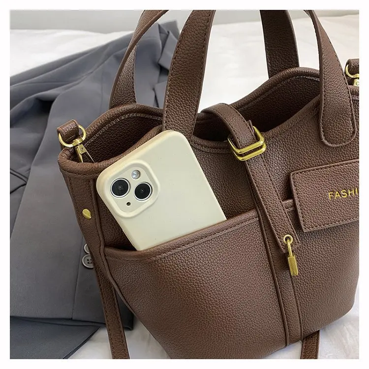 ✓ Design: formato bucket com alça de mão e alça longa ajustável — use como bolsa de ombro, transversal (“crossbody”) ou tipo tote, se adaptando ao seu ritmo.