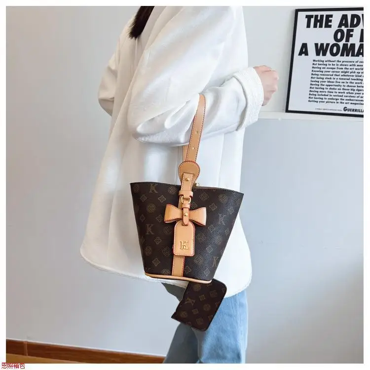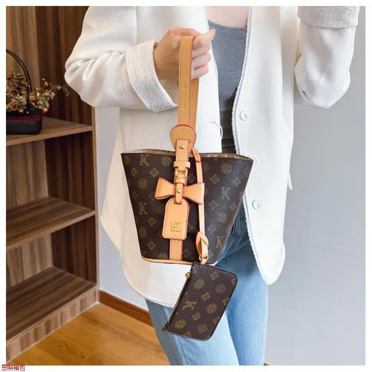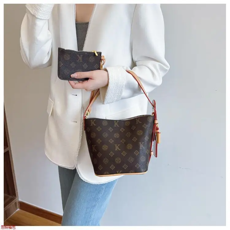 Conjunto Feminino Bucket Bag 2025 Estampada – Tote & Transversal Versátil para Dia e Noite