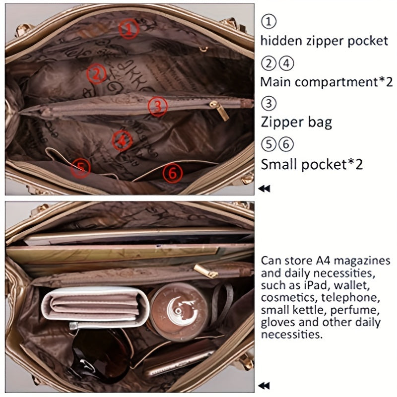 4-Piece Set of Stylish Faux Leather Purses and Handbags - Zipper Closure, Polyester Lining, Animal Print Pattern, Tote, Satchel, and Shoulder Bags for Women