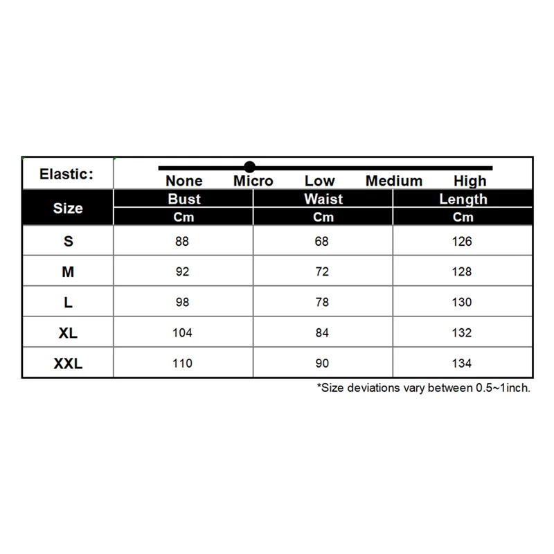 XL=US10=UK14=EU42(cm / inch) Bust: 104.0 / 40.94, Length: 132.0 / 51.97, Waist: 84.0 / 33.07