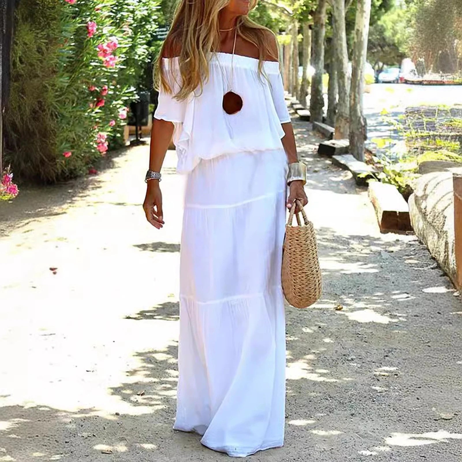 Eleve seu guarda-roupa com este vestido feminino branco estilo boho, ideal para momentos de lazer, resorts ou passeios ao pôr-do-sol.