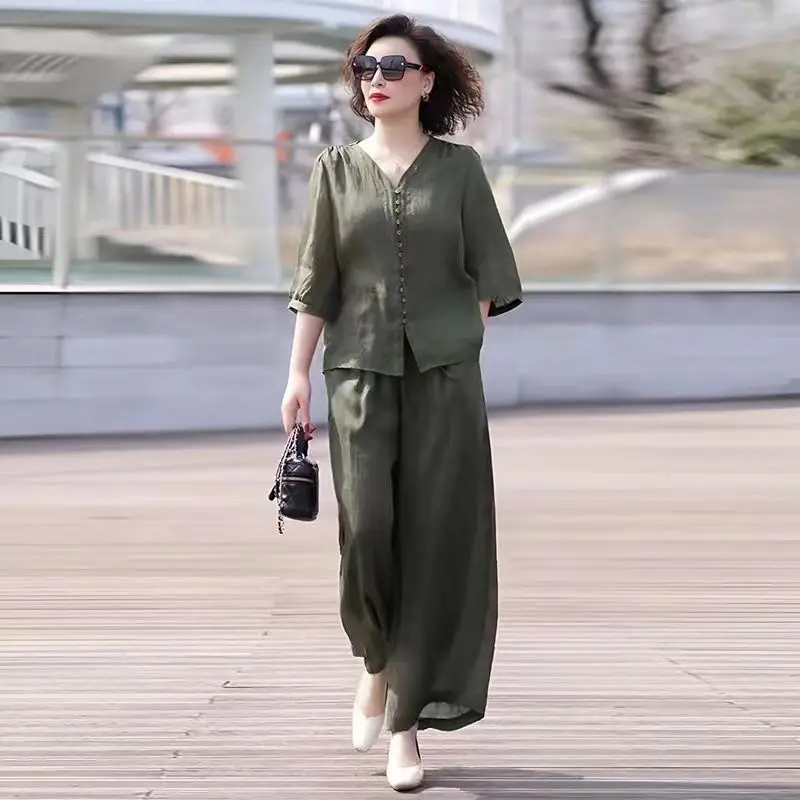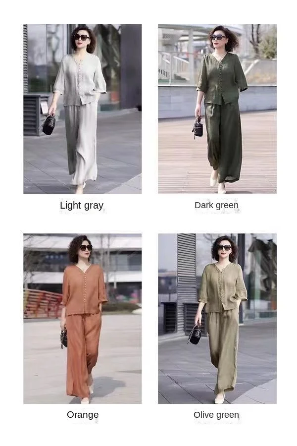 Conjunto Cotton-Linen Modern – Top & Calça Wide Leg 2-Peças