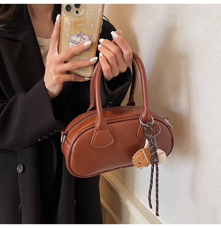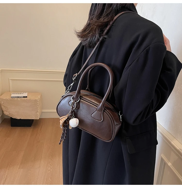 Retro Small Crossbody Bag Women 2025 – Bolsa Mini Estilo Bowling de Alça Transversal, Couro PU Soft