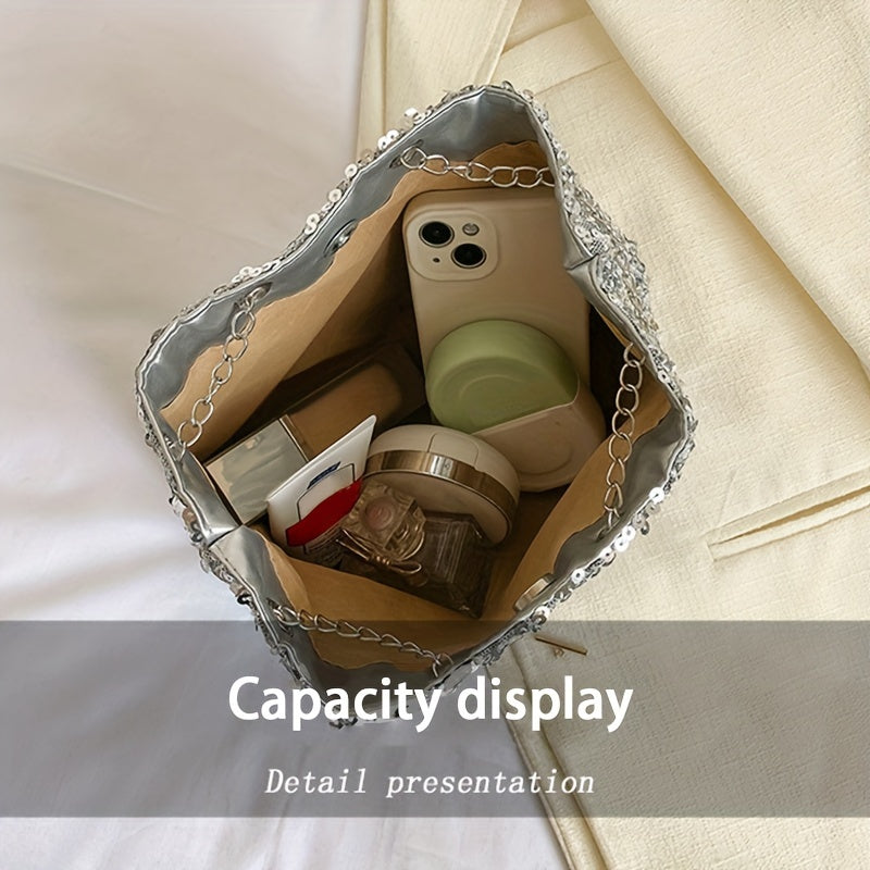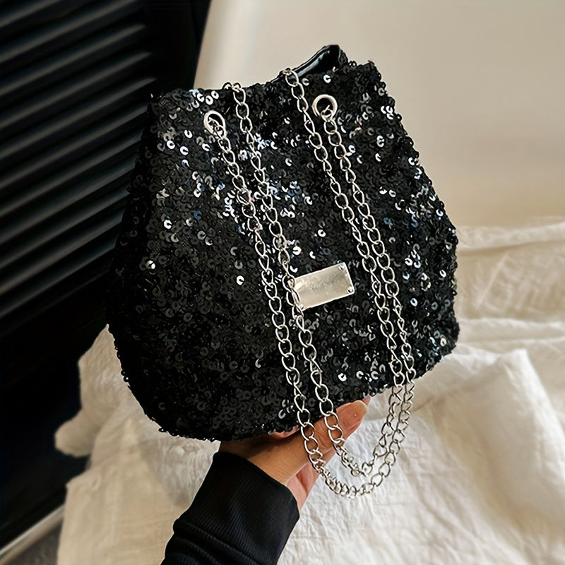 Bolsa Feminina Bucket Lantejoulas – Brilho & Textura para Looks Festa Dia & Noite