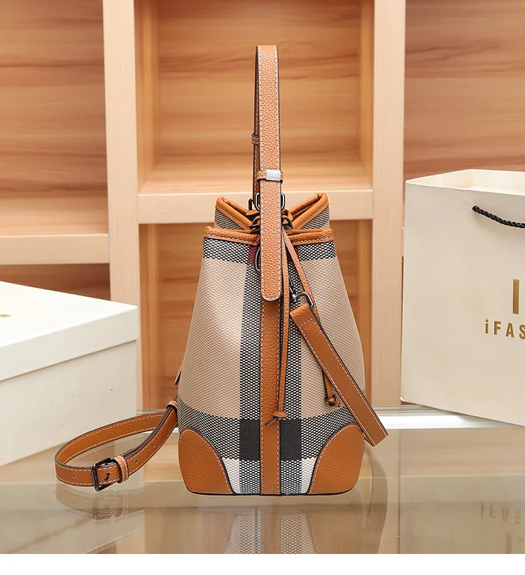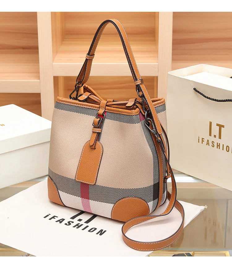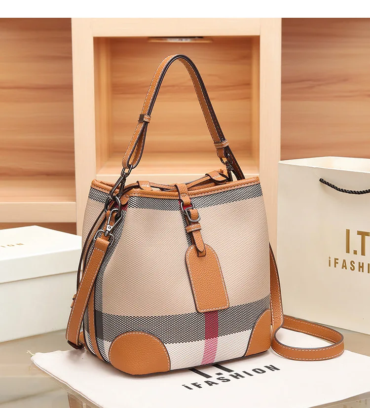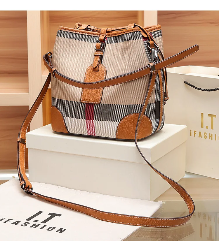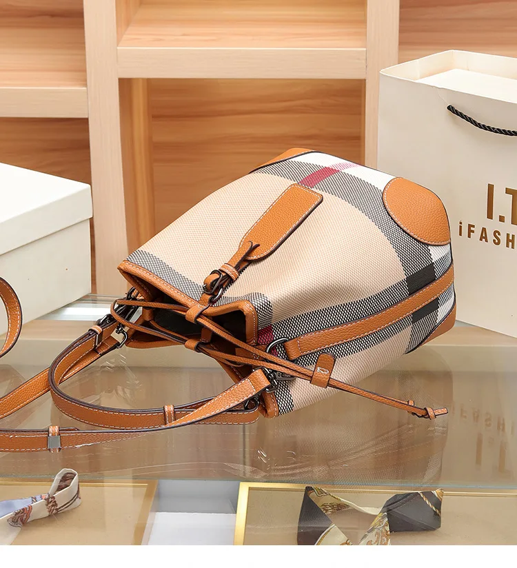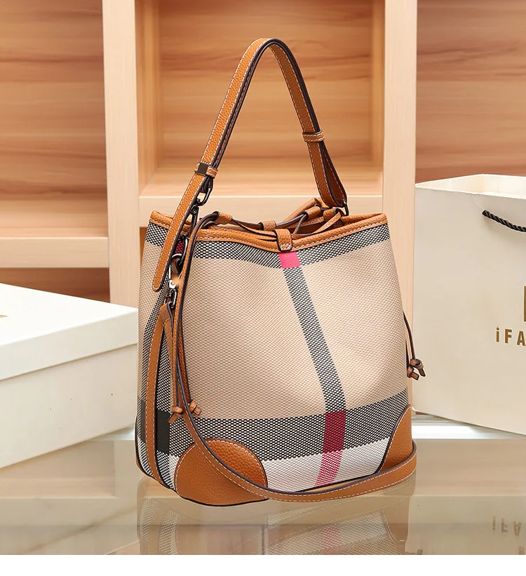 Bolsa Bucket Luxury Plaid Grande Capacidade