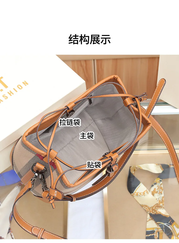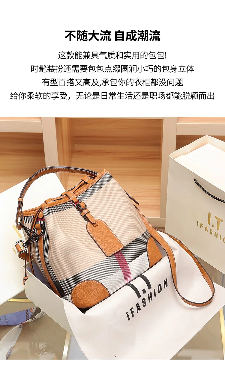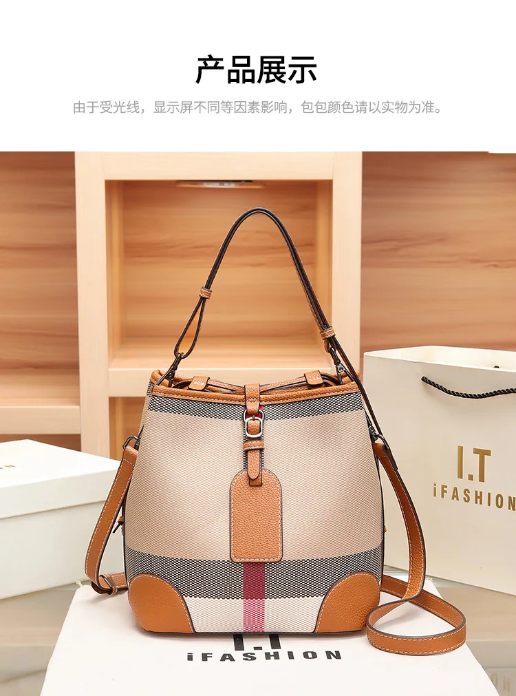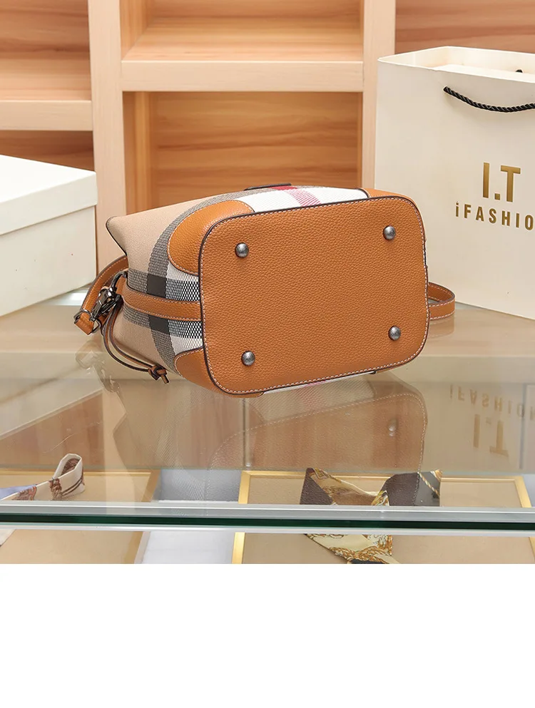 Bolsa Bucket Luxury Plaid Grande Capacidade