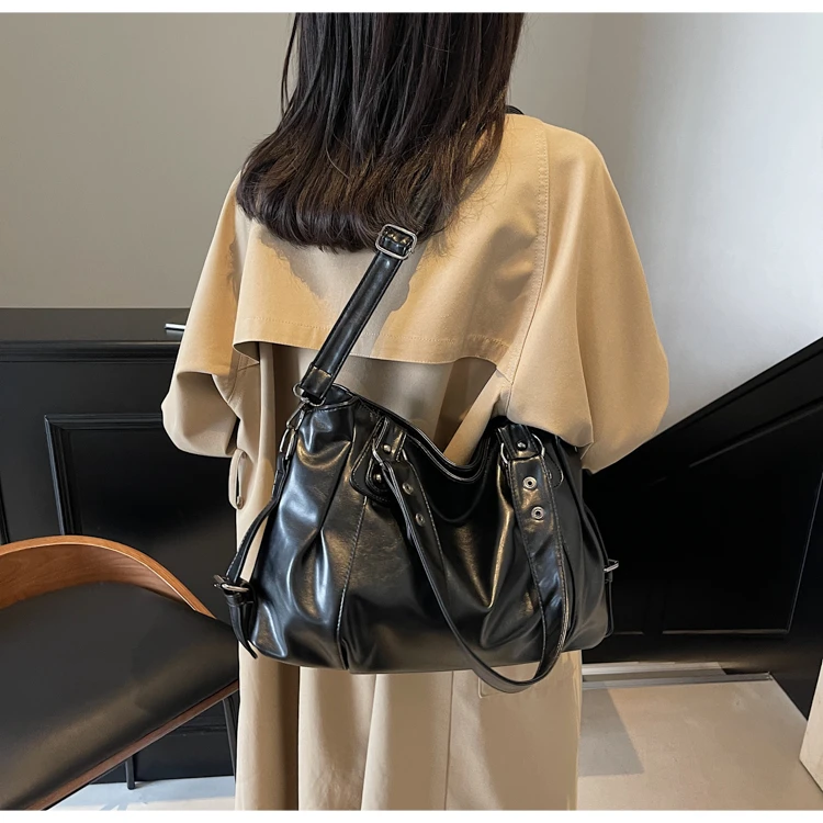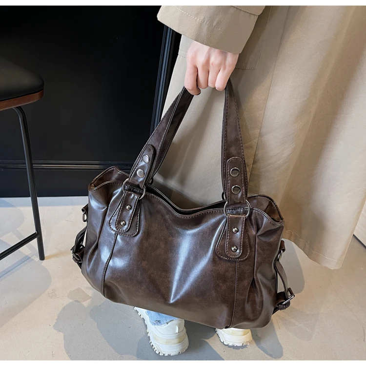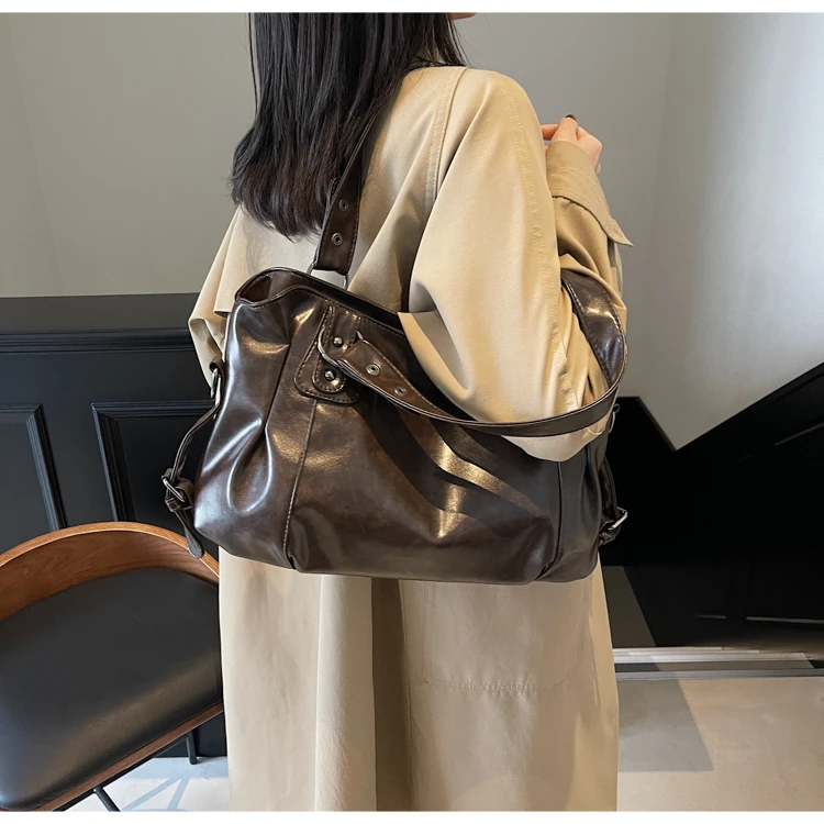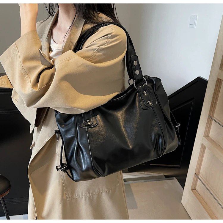 Bolsa Feminina Grande Capacidade 2025 – Tote / Transversal PU com Rebites & Fivela Detalhe