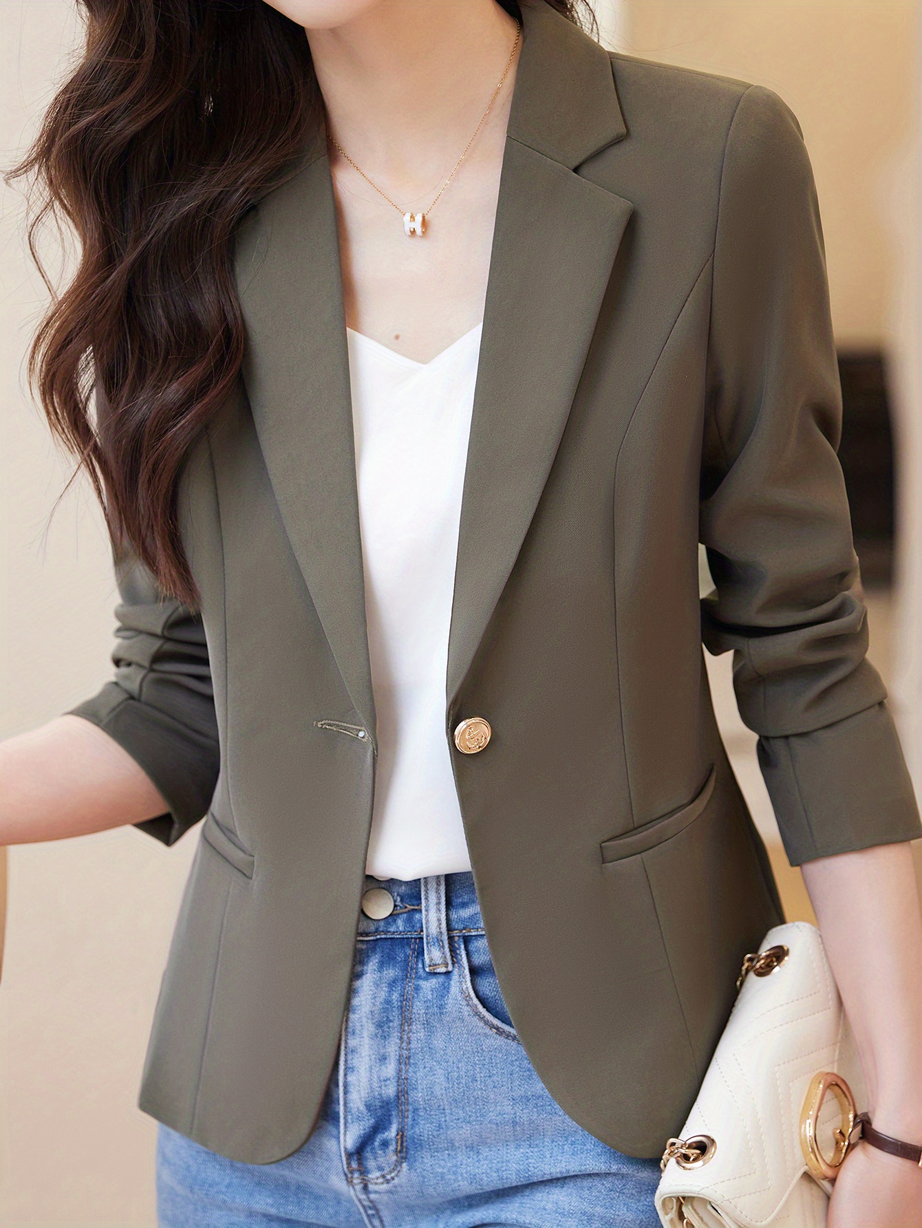 Blazer Feminino de Lapela com Fechamento de Um Botão – Manga Longa, Frente Aberta, para Trabalho e Escritório