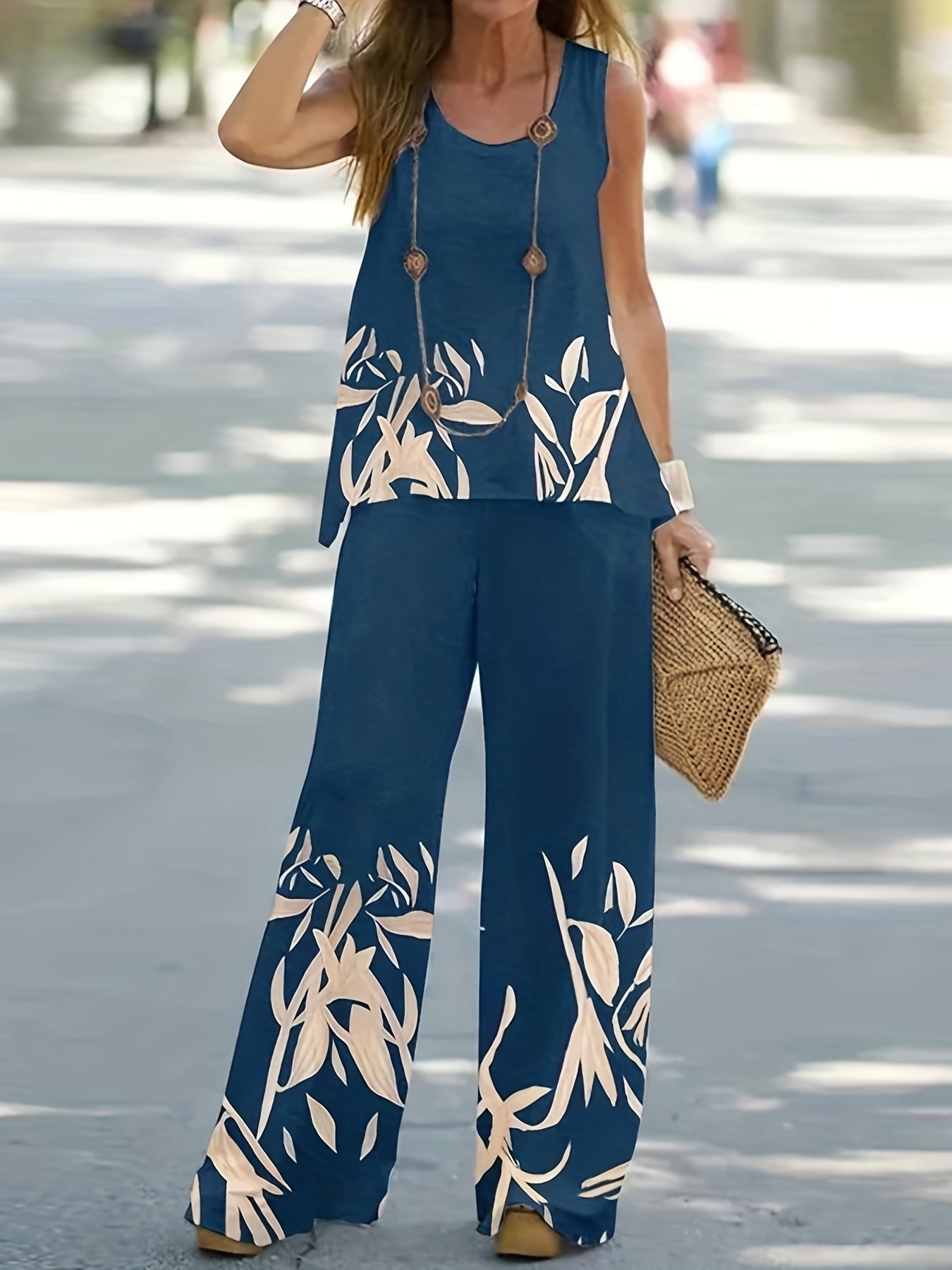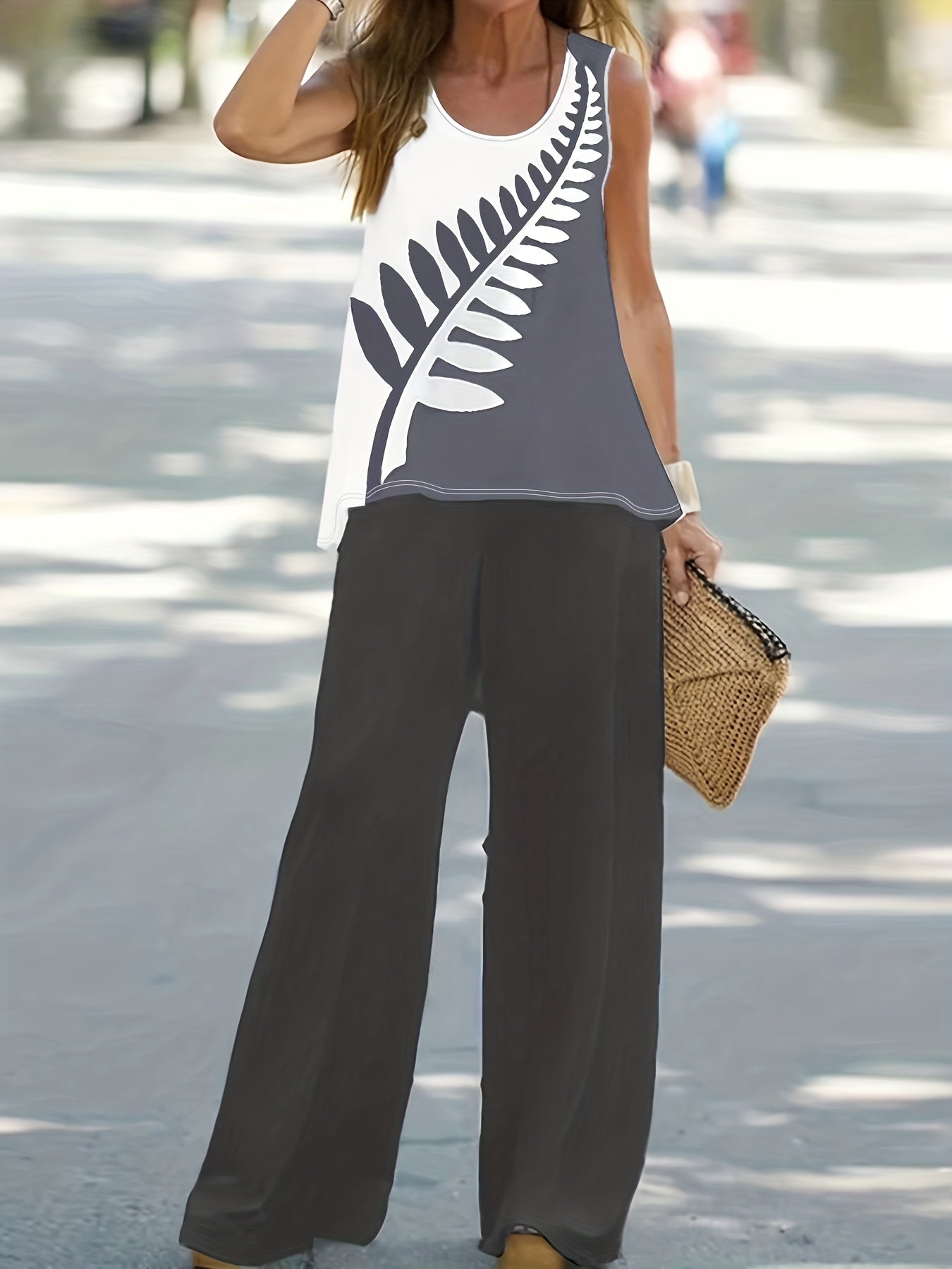 ✔ Modelagem: top regata com decote redondo confortável; calça reta de cintura média, ajuste solto que favorece os movimentos sem perder a estrutura.