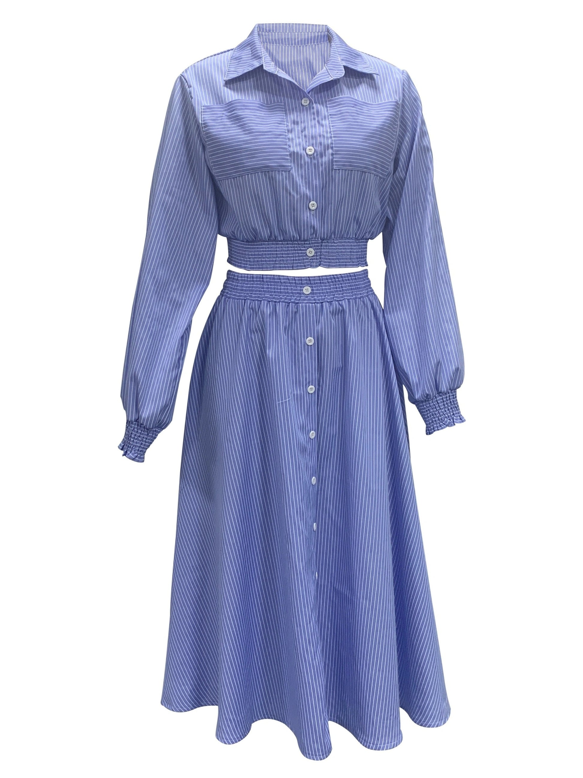 Conjunto Listrado Feminino Top Cropped Botão Frontal + Saia Godê – Estilo & Verão