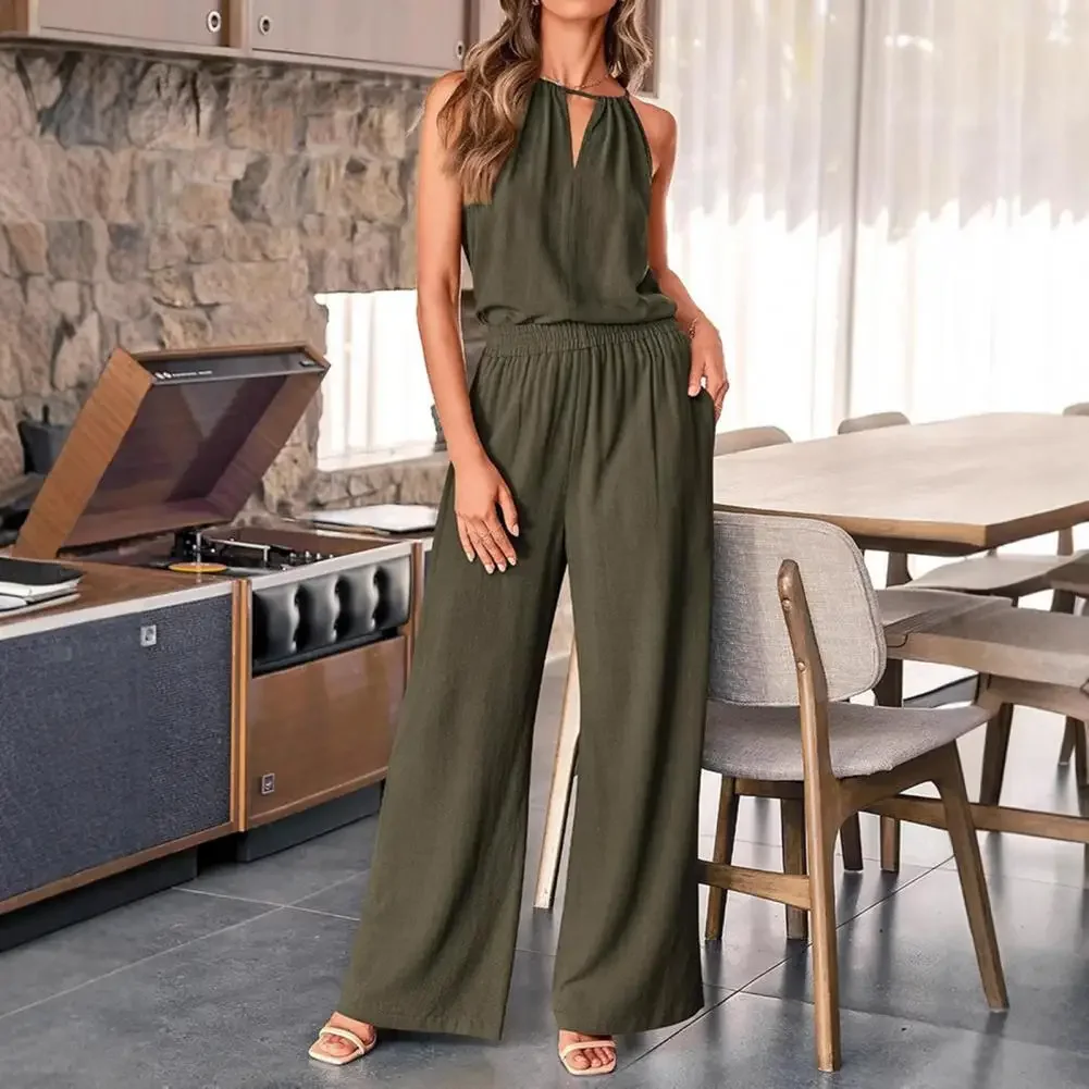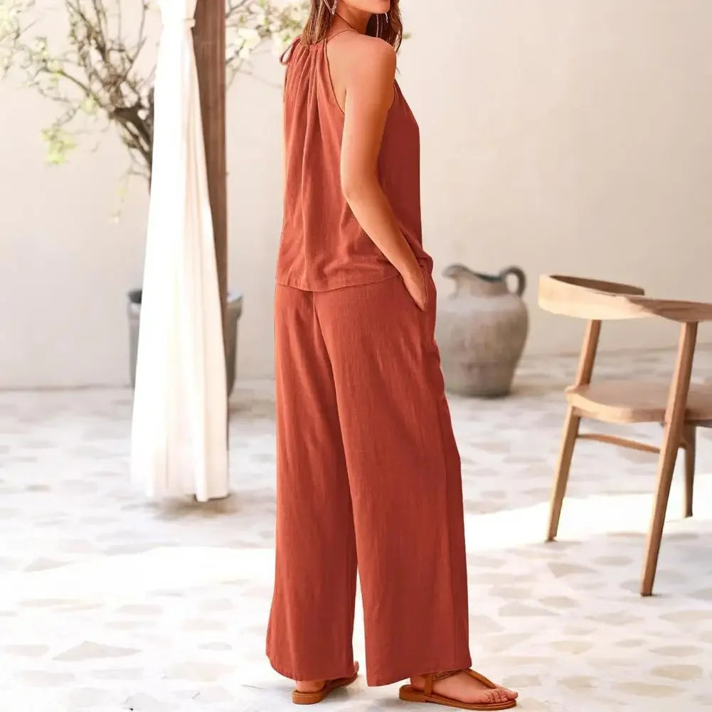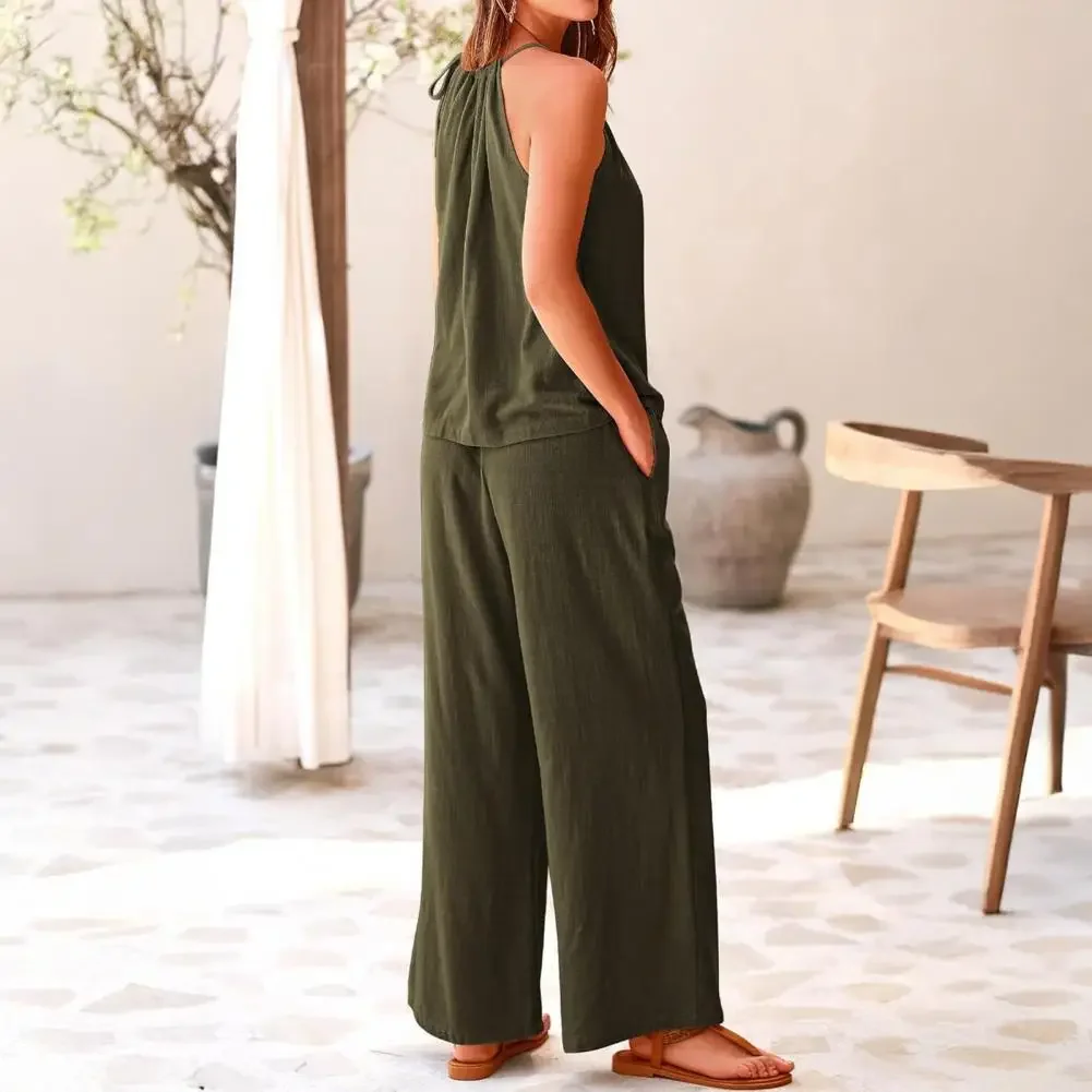 Modelagem & caimento: top com corte ombro a ombro, decote favorecedor e design fluido que valoriza o colo com delicadeza; calça (ou pantalona / wide-leg dependendo da peça) de modelagem solta e cintura confortável, que alonga a silhueta e dá movimento ao corpo — confortável para usar o dia todo sem perder o estilo.