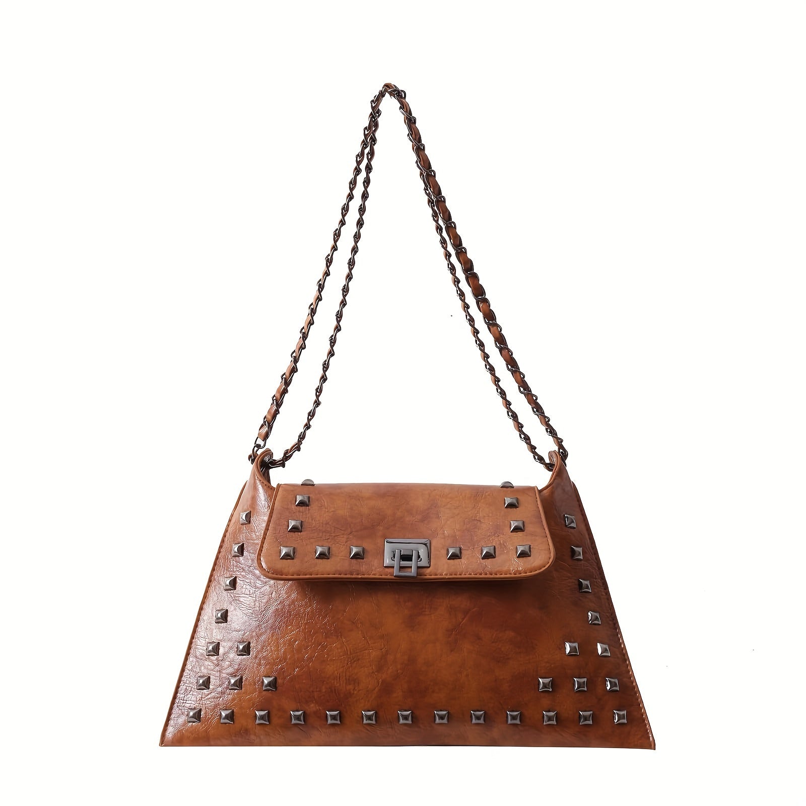✔ Material: acabamento sofisticado com textura refinada, ferragens metálicas e tachas (“riveted”) que adicionam personalidade.