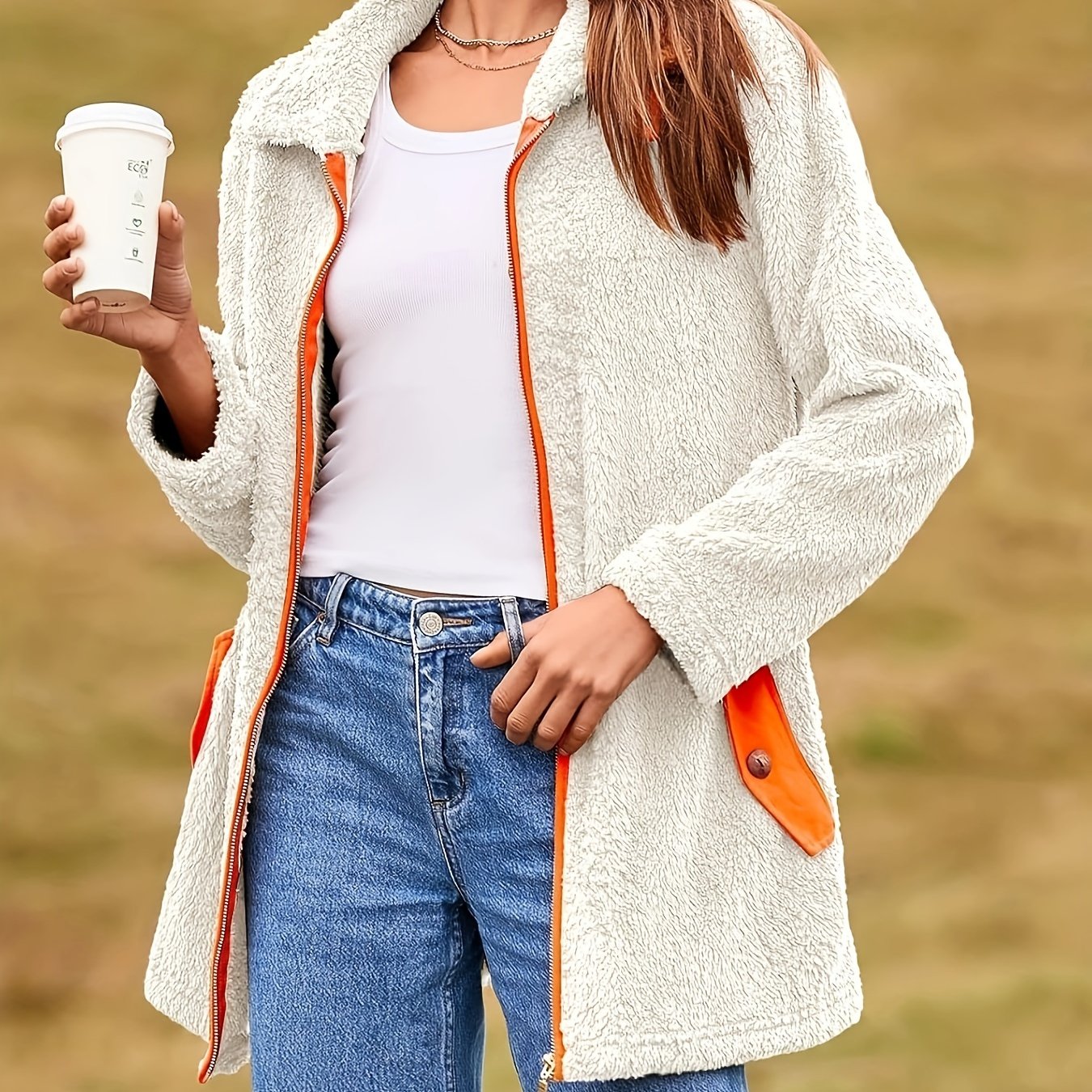 Apresentamos a Jaqueta Sherpa Fleece Aconchego – Inverno Premium, confeccionada em 100% poliéster, forro macio tipo sherpa, design com zíper frontal, mangas longas e bolsos laterais funcionais — tudo pensado para oferecer calor, conforto e estilo nas estações frias.
